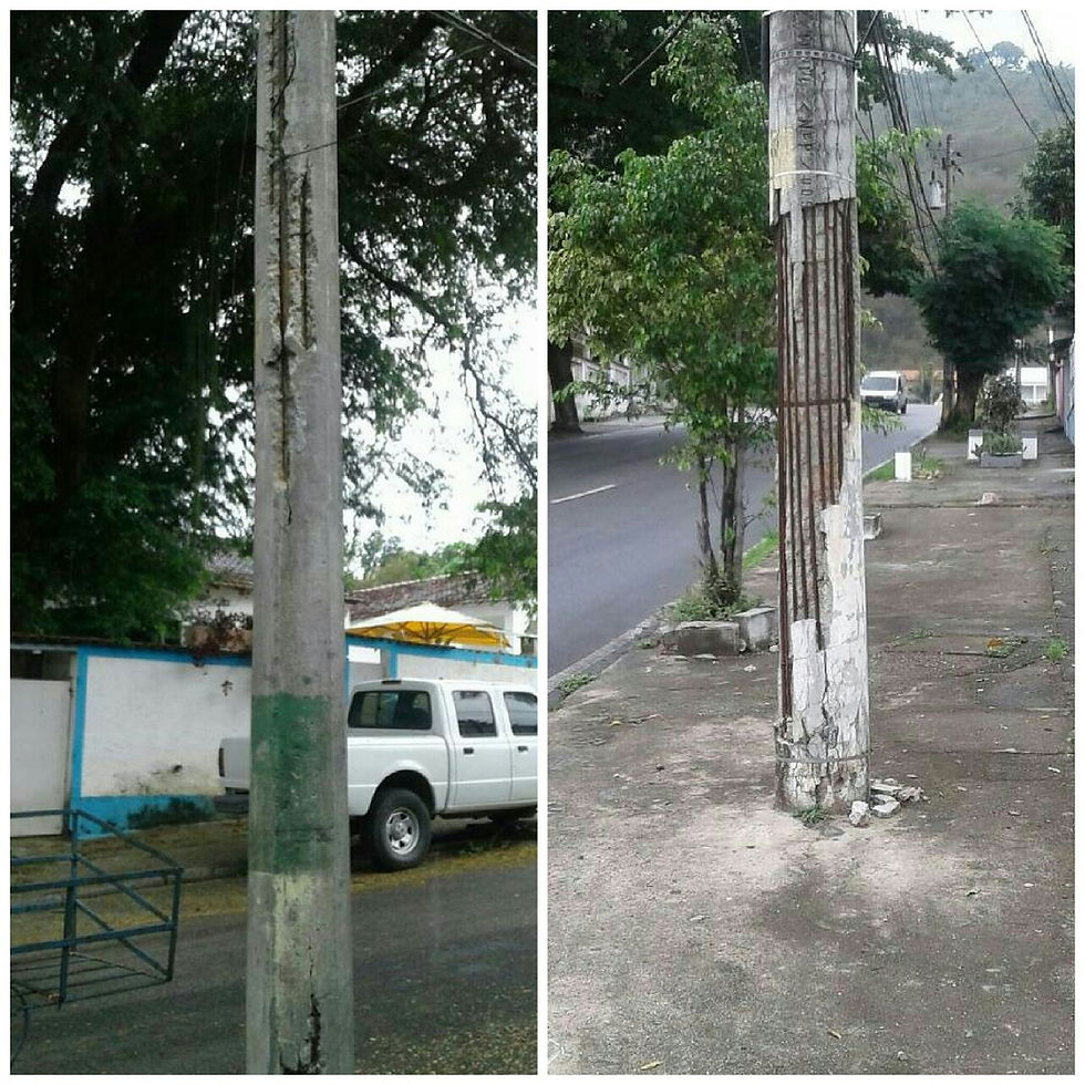 Essa semana, seguidores da página enviaram para a nossa redação, fotos de postes com ferros a mostra nas Ruas Pacífico Pereira e Sílio Bocanera. Nessa sexta-feira (24), uma equipe da Light, concessionária de energia, esteve nos locais e verificou que os postes "não oferecem risco iminente".