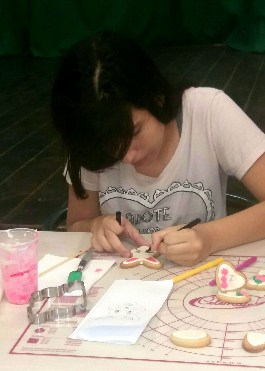 As aulas ministradas foram de Naked Cake (Professora Alessandra Oliveira), Ovos de Páscoa (Profª Luciana Lisboa), Cálculo de Venda, Marketing e Clientes (Profª Bárbara Oliveira) e Biscoitos Decorados (Profª Renata Tannuri - na foto). Assim, o evento foi repleto de trocas de conhecimento com alunas interessadas e participativas. As profissionais envolvidas trouxeram materiais e disposição em colaborar.