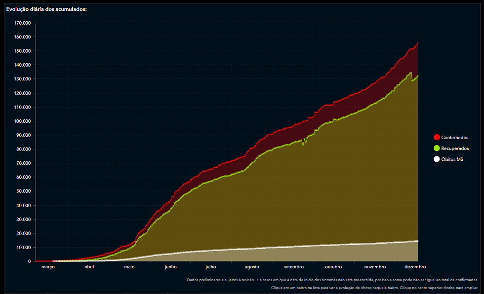 Os casos notificados por semana epidemiológica estão atualizados somente até o mês de novembro, mas os dados são alarmantes. Segundo divulgação da SMS,´na primeira semana de novembro existiam 9.964 casos notificados e os números cresceram até o fim desse mês, terminando com mais de 29.790 infectados pela Covid-19. Um aumento de quase 200% em notificações. A SMS ainda não divulgou os dados do início de dezembro.